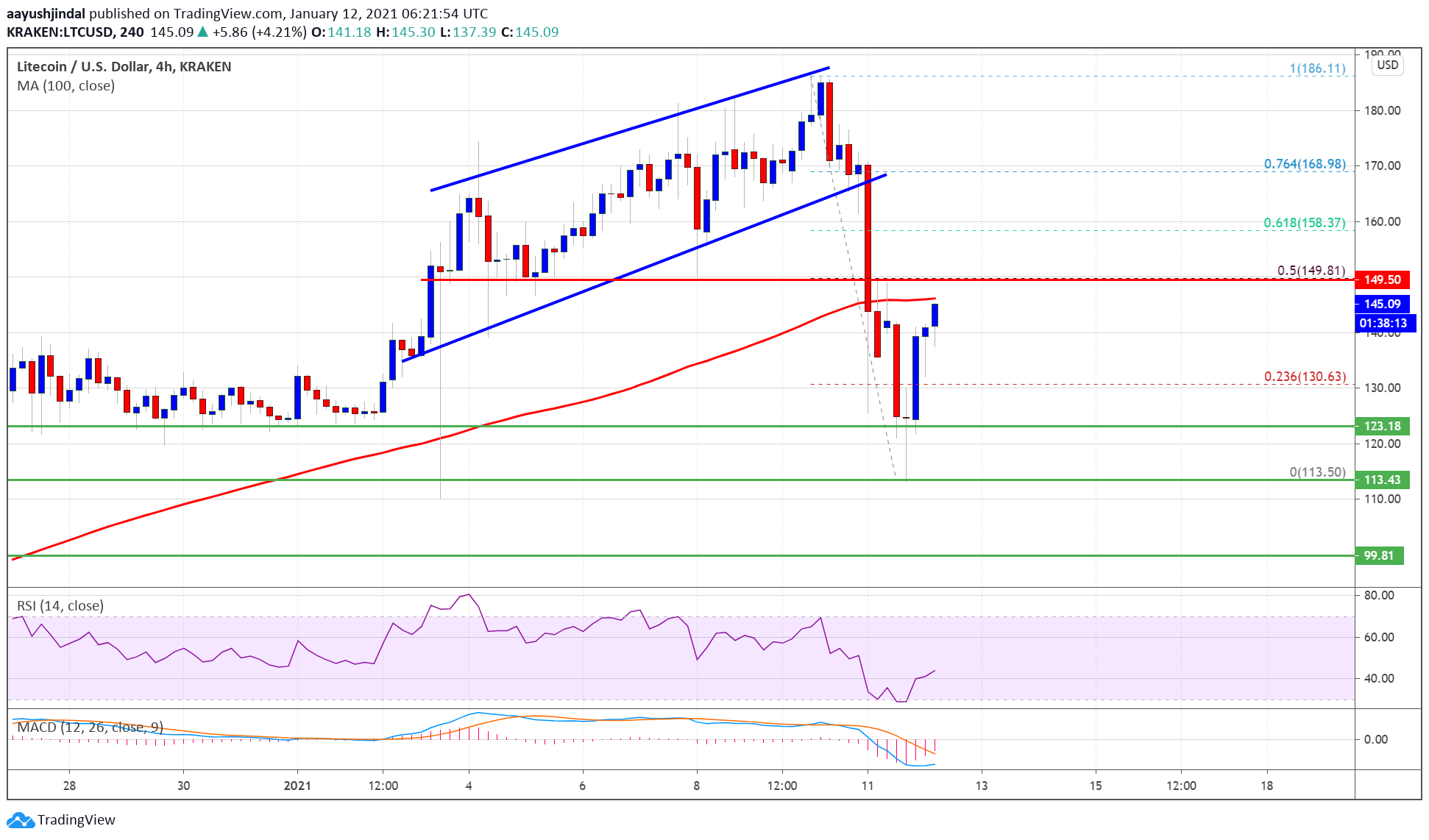 Litecoin Price Recovers above $140