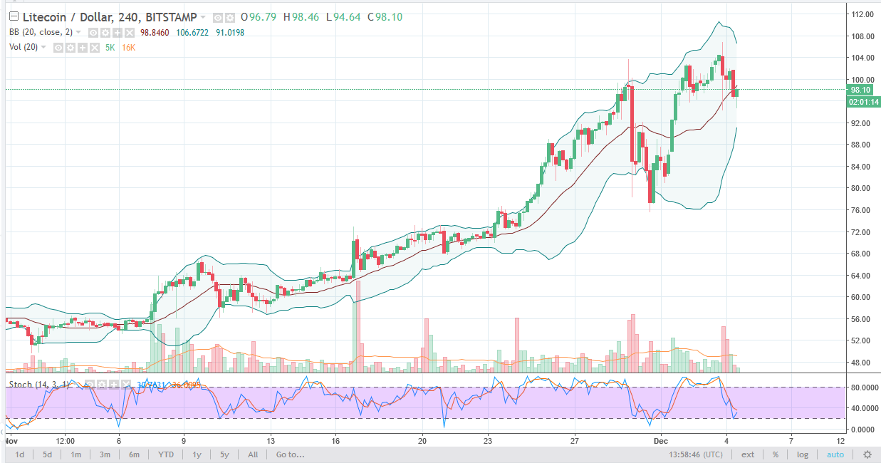 Litecoin has found a bit of support near the $95 level, and I think currently we are trying to figure out whether the $100 barrier is something that we can overcome easily. We are getting ready to cross over in the stochastic oscillator oversold region, or at least close to it, and therefore I think we are going to find buyers soon. The slow grind higher continues.