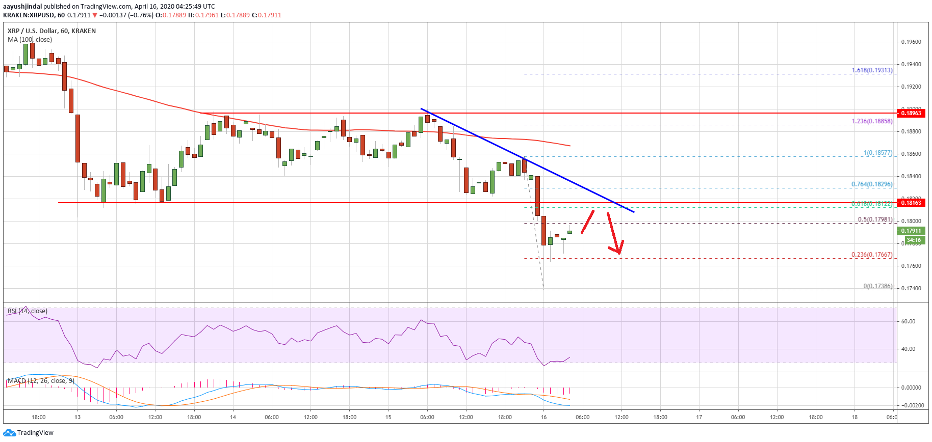 Yesterday, we discussed the importance of the $0.1800-$0.1810 support area for ripple. XRP price failed to continue higher above the $0.1900 resistance and recently declined sharply below the $0.1800-$0.1810 support.