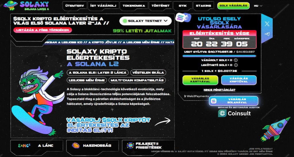 Egyelőre viszont úgy tűnik, hogy a $SOLX valóban komoly esélyes arra, hogy a következő 100-szoros token legyen a mémérmék világában.