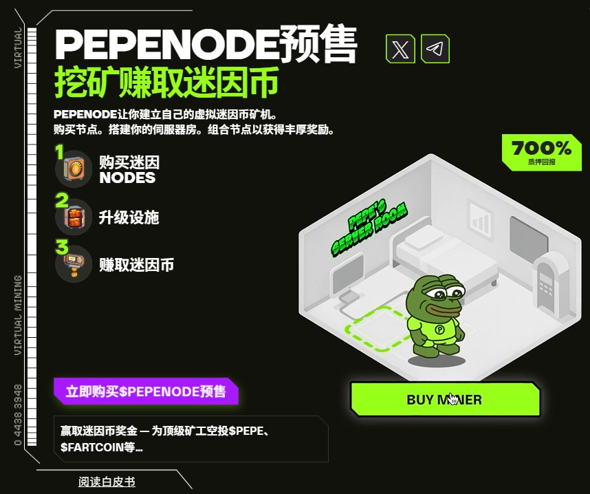 更重要的是,PepeNode 將整個過程打造成一場“遊戲化的虛擬挖礦體驗”,將 DeFi 機制與迷因文化相融合。
