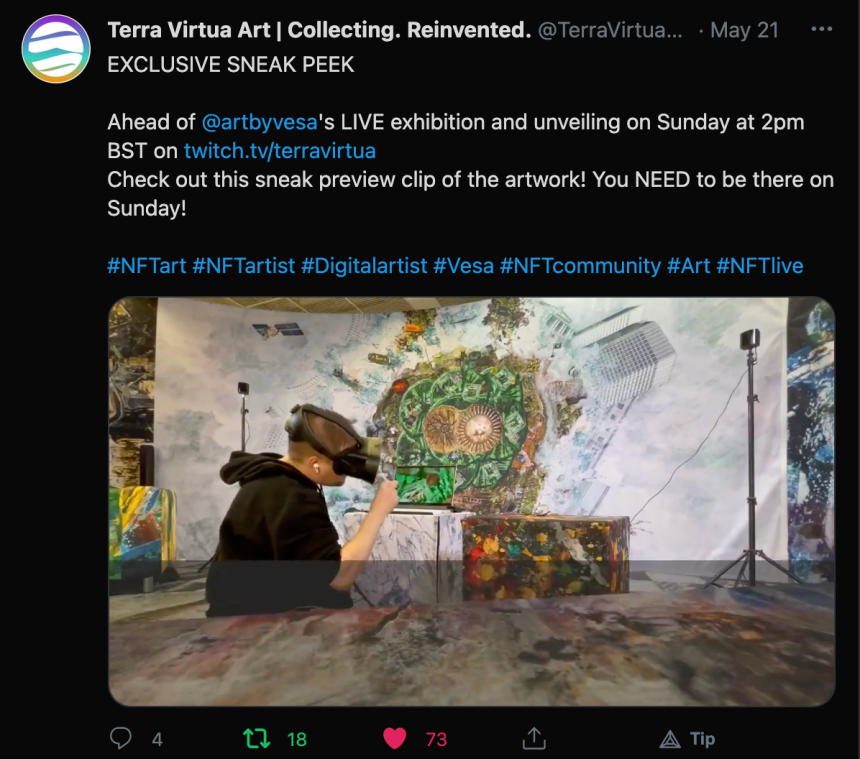 Have a look at this interview with the co-founder Gary about why Terra Virtua is a big deal in the NFT space, and their art segment will soon be a force to be reckoned with here.