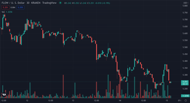 Flow-based Genies had a major announcement to start the week - but the hype on crypto Twitter over the weekend set higher expectations. | Source: FLOW-USD on TradingView.com