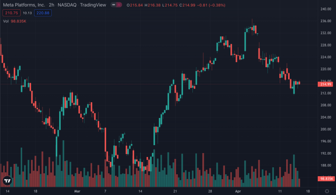 Crypto Twitter is not enthused by Meta's latest announcement around their anticipated NFT fees. Let's just say that aren't quite in the same realm as OpenSea, LooksRare and the like. | Source: NYSE: FB on TradingView.com
