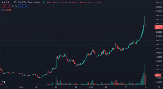 The new BAYC 'Otherside' property will be available for purchase solely via the APE token. | Source: APE-USD on TradingView.com