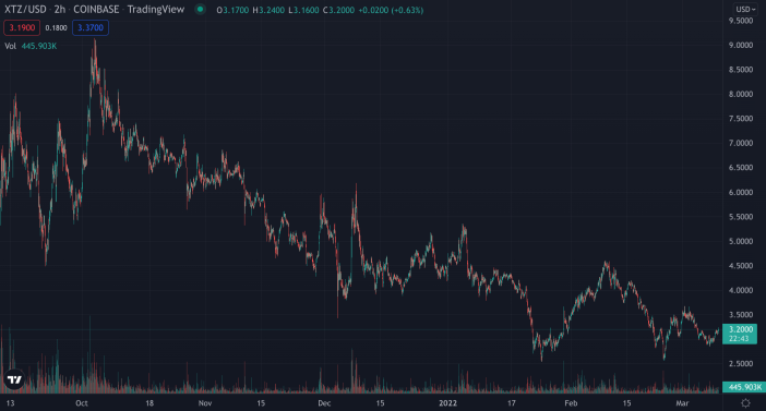 OneOf has found it's latest partner in music with Biggie Smalls' estate. The OneOf platform operates on Tezos (XTZ). | Source: XTZ-USD on TradingView.com