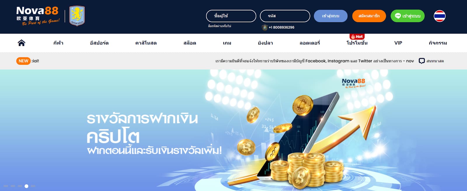 Nova88 เป็นคาสิโน Litecoinที่รองรับการชำระด้วยคริปโตแบบหลายสกุลเงิน ทำให้เป็นอีกหนึ่งเว็บที่เหมาะสำหรับกับเทรดเดอร์โดยเฉพาะ โดยเว็บไซต์ได้รับใบอนุญาตจาก Internet Gaming License Validation พร้อมกับการเป็นพันธมิตรสโมสรกีฬาชั้นนำ ไม่ว่าจะเป็น แอสตันวิลล่า อินเตอร์มิลาน เซวิลลา
