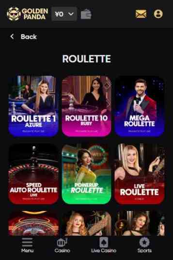 - ゴールデンパンダ(Golden panda)-プレイヤー還元率が最も高い「フレンチルーレット」がプレイできる。