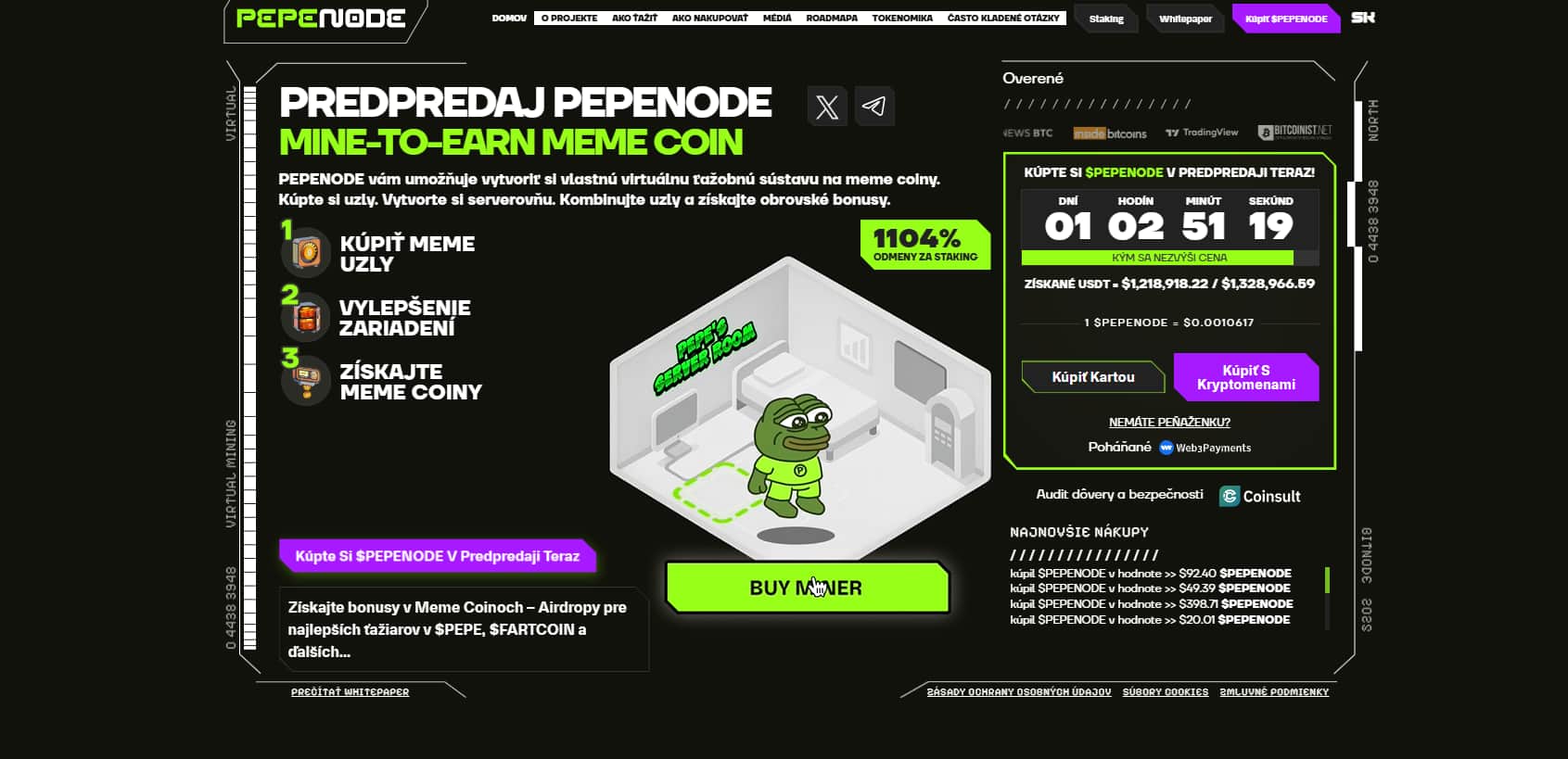 Pepenode prináša hybridný koncept, ktorý spája virtuálnu ťažbu s meme kultúrou. Namiesto drahého hardvéru a nákladov na elektrinu používatelia fungujú v simulovanom prostredí, kde budujú a vylepšujú „virtuálne ťažobné uzly“. Tie prinášajú odmeny v tokenoch a dodatočné bonusy, vďaka čomu je celý zážitok dostupnejší a zábavnejší.