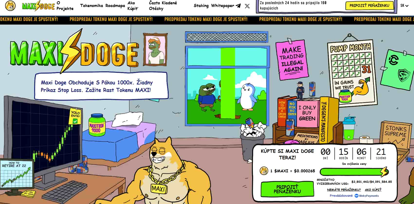 Maxi Doge získava viditeľnosť vďaka rastúcej komunite, novým zalistovaniam a dobre vystavanému roadmapu, ktorý zahŕňa staking odmeny aj virálny marketing.