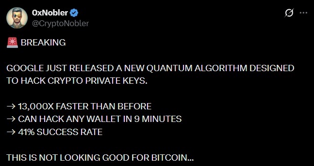 A development out of Google has changed the timeline on quantum threats. The company unveiled a new quantum algorithm designed to crack cryptographic private keys. The numbers are striking. The algorithm runs 13,000 times faster than previous methods. It can potentially hack a standard wallet in just nine minutes. And early testing shows a 41% success rate.