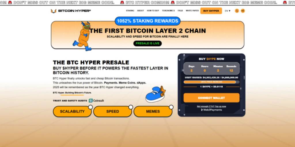 - Bitcoin Hyper ($HYPER) – Promite viteză, funcționalitate și control cu rețeua Layer 2 pe Bitcoin.