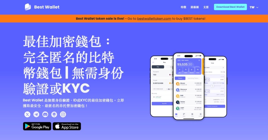 Best Wallet 是購買代幣在上架 Coinbase 前的首選。它支援比特幣及所有 ERC-20 代幣,並能連結至去中心化交易所(DEXs),讓您能在代幣登陸主流交易所前搶先購入。
